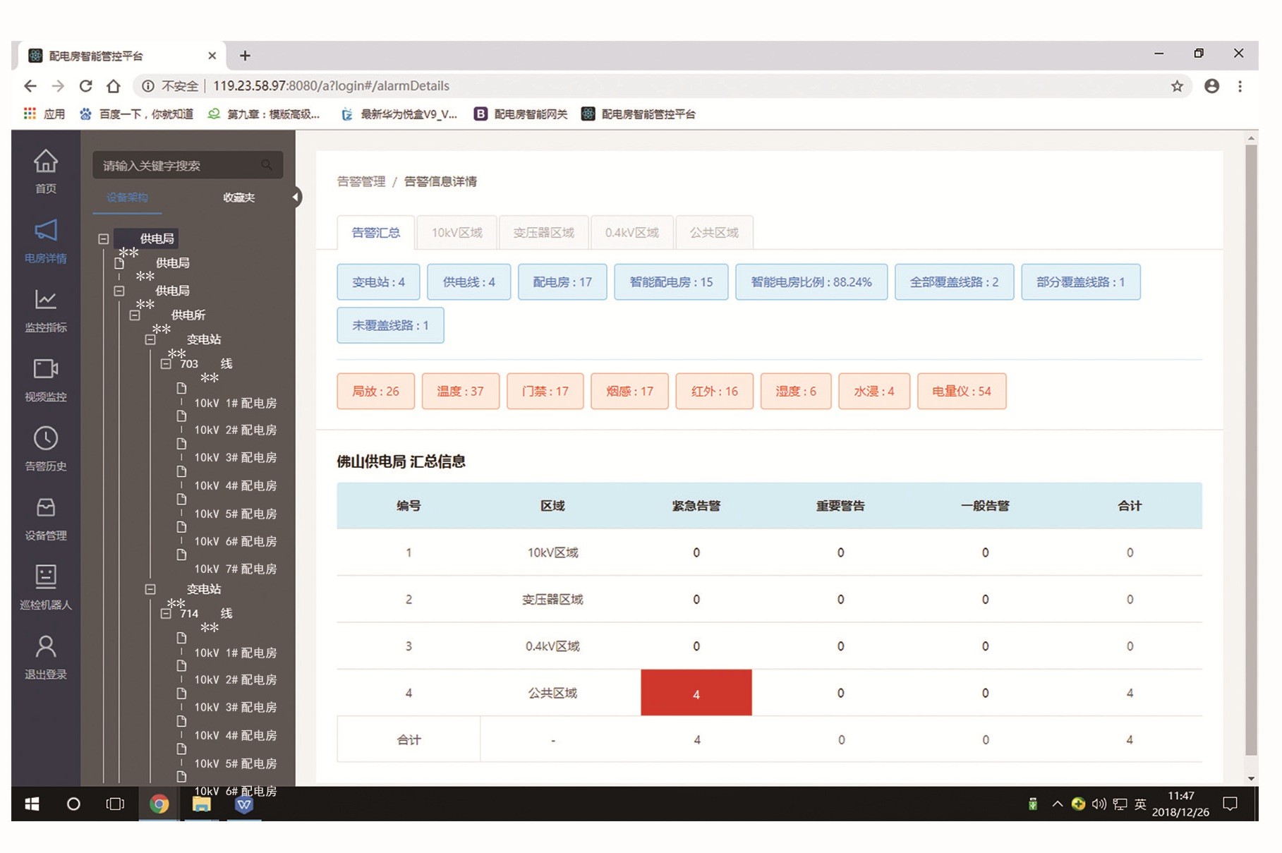 通過(guò)WEB客戶端應(yīng)用管理相關(guān)業(yè)務(wù)流程,點(diǎn)擊地圖選取管轄區(qū)域內(nèi)任一屬下的電房,進(jìn)入后通過(guò)圖形化方式顯示電房的實(shí)時(shí)監(jiān)控?cái)?shù)據(jù),提供控制按鈕及操作警示。增設(shè)外網(wǎng)網(wǎng)關(guān)或通過(guò)內(nèi)網(wǎng)手機(jī)卡后,可向相關(guān)管理人員的外網(wǎng)移動(dòng)終端或手機(jī)發(fā)送報(bào)警功能。
